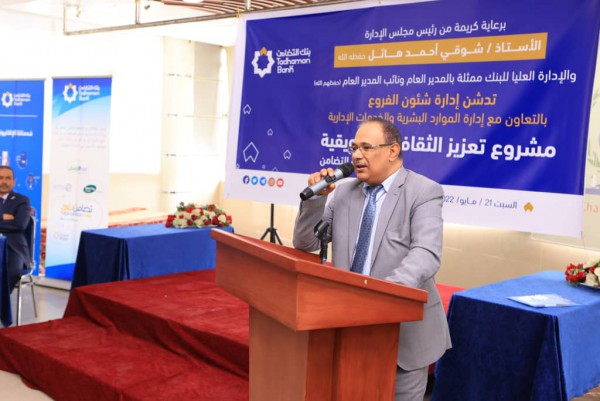 Where the inauguration was initiated by Brother: Bashir Sultan Al-Maqtari - Deputy General Manager, appreciating the interest of the Board of Directors and the bank’s leadership in this important project, indicating that all employees take the utmost importance for this project, reviewing with full transparency the most important observations in some branches to be taken into consideration in the future, thanking everyone for their efforts during the past period of this current year 2022.